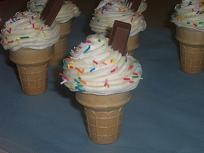 Another alternative is to make cupcakes, chocolate or vanilla, and bake as per recipe. Remove cakes from paper cases and place in ice cream waffle cones. The cakes should fit in easily or they may need to be shaped slightly to ensure a snug fit.