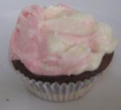 - Drop alternate spoonfuls of pink and white frosting on top of each cupcake.